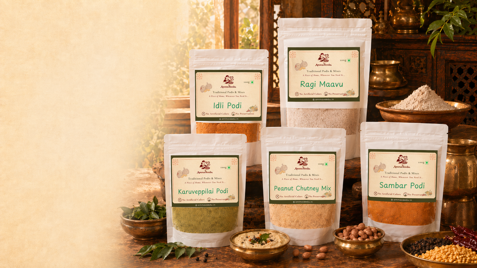 Amma Veedu began with one simple thought, food should feel like home, even on the busiest days. What started as Amma making podis, chutney mixes, and traditional blends for her daughters has now become a small-batch kitchen made for every home that misses that familiar taste.